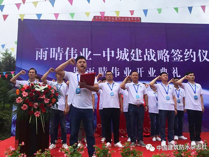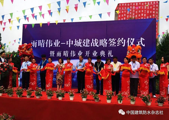 2018年6月21日, 湖北雨晴偉業防水技術發展有限公司開業慶典暨中城建戰略簽約儀式活動現場賓客云集,人頭攢動,場面火爆、掌聲如雷。這標志著雨晴偉業從今天起正式的面向大眾,面向市場,也意味著雨晴偉業工廠的正式運營。