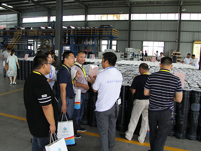 開業當天,道路兩邊隨處可見展架上整齊擺放著雨晴的各類優質產品,并配備專人進行專業的講解,工廠里更是在如火如荼,沒日沒夜的趕工期生產著,在此次的工廠參觀中,整潔劃一的生產環境,高效高質的生產設備,創新環保的產品應用,讓每位參觀嘉賓都留下深刻印象。
